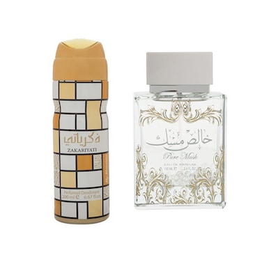 طقم عطر خالص مسك او دي برفيوم 100مل + مزيل للعرق ميمورايز 50مل من لطافة