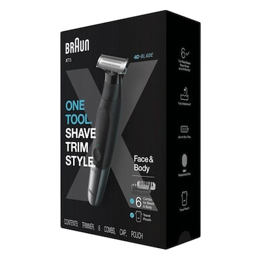 براون - ماكينة حلاقة شاملة XT5200 لون أسود وفضي، مع 6 أمشاط وشنطة