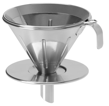 The reusable steel filter has small holes that let oils pass through and gives the coffee a richer character. You can place the filter on a glass, mug, cup, vacuum flask or carafe. The filter is easy to clean since it consists of 3 parts that can be separated. Wash this product before using it for the first time.