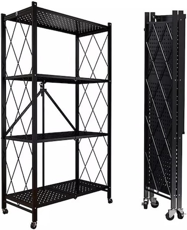 Generic رف تخزين قابل للطي من اربع طبقات مع عجلات 71×34×125 سم لون اسود من تاكو