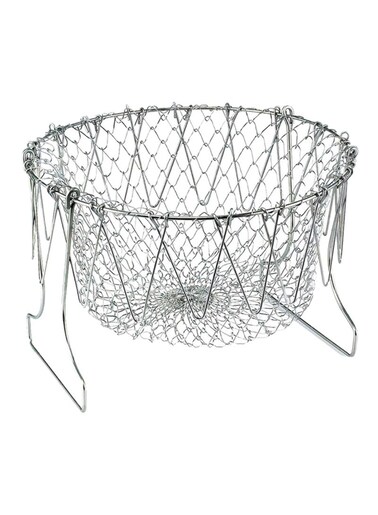 سلة قلي قابلة للطي من الستانلس ستيل فضي 23x11x2سنتيمتر