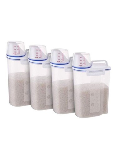 - مجموعة عبوات لتخزين رقائق الذرة والرز مع أكواب معيارية من 4 قطع شفاف/أزرق 2كجم