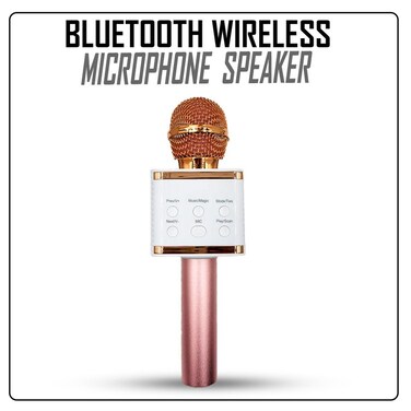جينيريك مكبر صوت بلوتوث ميكروفون كاريوكي V7 - وردي مع أبيض