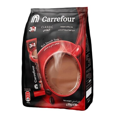 كارفور 3 في 1 مزيج قهوة سريعة التحضير كلاسيك كيس 20 جرام × 30