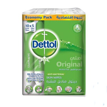 ديتول مناديل للبشرة مضادة للبكتيريا الأصلي 10 مناديل × 5 عبوات