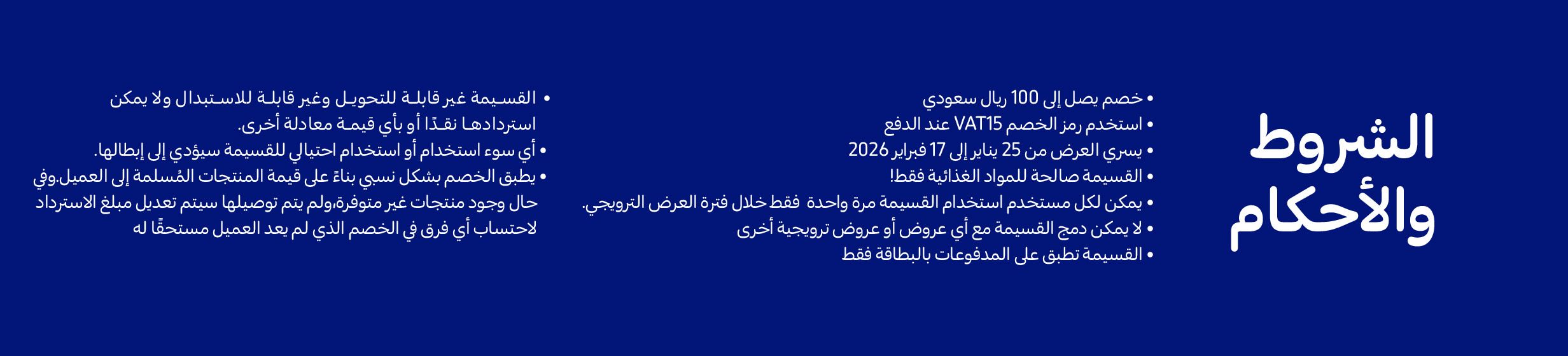 بالإضافة إلى ذلك، نقدم لك الفرصة لتسوق كل ما تحتاجه من أجل رمضان بكل سهولة مثل زينة رمضان التي تضفي جوًا من البهجة والسرور داخل كل منزل، إلى أفضل أصناف التمور والمجمدات، والخضار الطازجة، ومستلزمات العناية الشخصية والنظافة، وكذلك الأطعمة المفضلة لوجبة السحور كاللبنة والجبن والخبز واللبن وغيرها من المنتجات التي تضمن لك ولعائلتك سحورًا متكاملًا ومغذي.