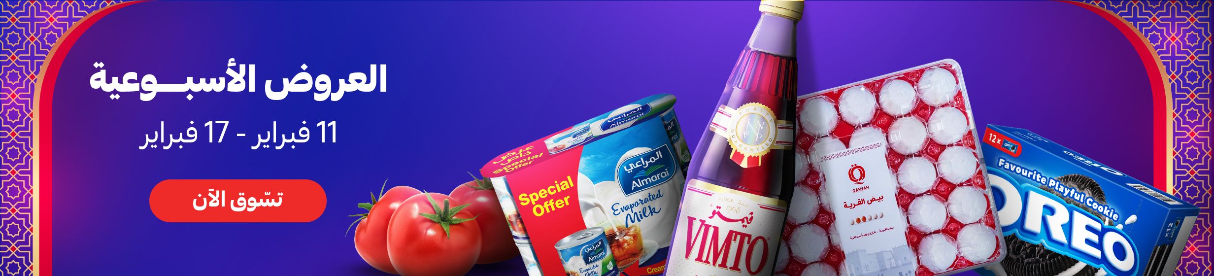 بالإضافة إلى ذلك، نقدم لك الفرصة لتسوق كل ما تحتاجه من أجل رمضان بكل سهولة مثل زينة رمضان التي تضفي جوًا من البهجة والسرور داخل كل منزل، إلى أفضل أصناف التمور والمجمدات، والخضار الطازجة، ومستلزمات العناية الشخصية والنظافة، وكذلك الأطعمة المفضلة لوجبة السحور كاللبنة والجبن والخبز واللبن وغيرها من المنتجات التي تضمن لك ولعائلتك سحورًا متكاملًا ومغذي.