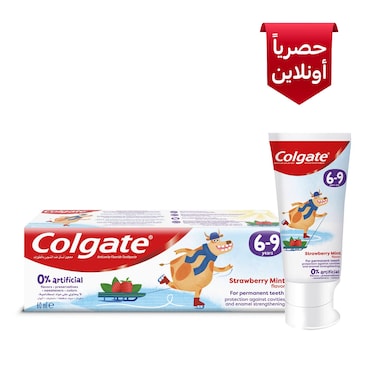كولجيت معجون أسنان للأطفال خالٍ من المواد الاصطناعية - نكهة الفراولة والنعناع - للعمر 6-9 سنوات - 60 مل