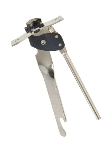 فتاحة علب من الإستانلس ستيل تتميز بقبضات ومقبض مصنوع من بلاستيك غير سام