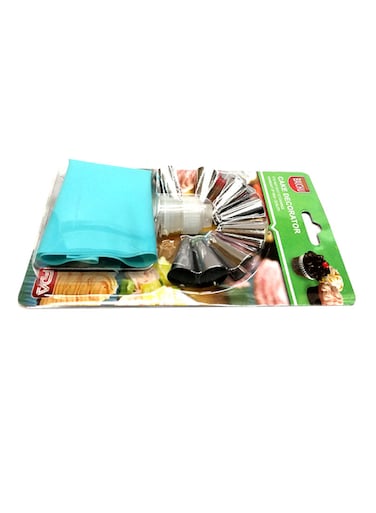 طقم فوهات لتزيين الكيك مع كيس تزيين الكيك مكون من 10 قطع أزرق/أبيض/فضي