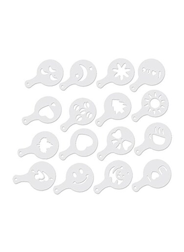 طقم قوالب تزيين القهوة بالاستنسل مكون من 16 قطعة أبيض 15x9.7x1.5سنتيمتر