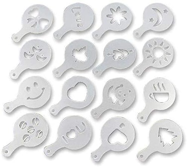 طقم/16 قطعة من قوالب الطباعة الفنية المزخرفة للقهوة السميكة واللاتيه والكابتشينو، قوالب حقن رغوة القهوة وتشكيل الكعك