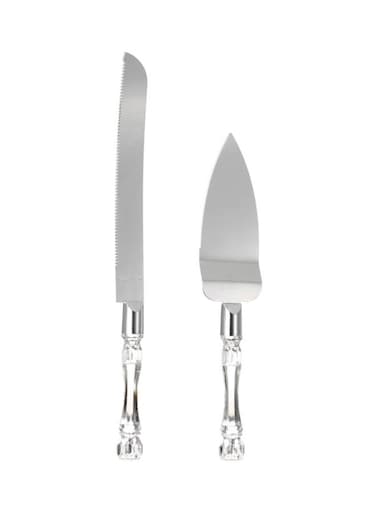 طقم سكين وملعقة تقديم من الاستانلس ستيل مكون من قطعتين فضي Knife (33), Server (27)سنتيمتر