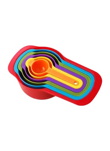 طقم أكواب وملاعق قياس سهل التخزين مكون من 6 قطع متعدد الألوان