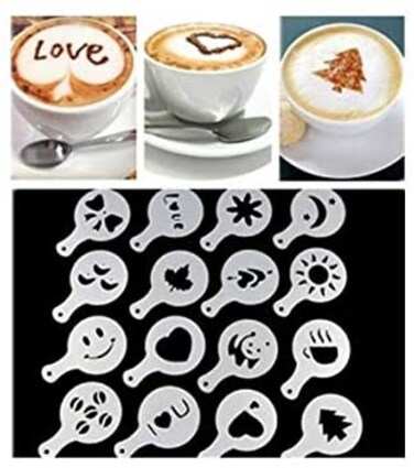 مجموعة قوالب تزيين قهوة اللاتيه جيرلاند مكونة من 16 قطعة من القوالب البلاستيكي - نموذج للقهوة الفاخرة