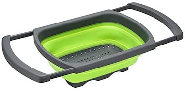 المصافي - مصفاة قابلة للطي من السيليكون للخضروات والفواكه قابلة للتعديل مع مقبض أداة المطبخ (أخضر)