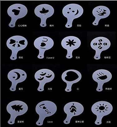 قوالب مثقبة بتصاميم فنية للابداع بتزيين القهوة (مجموعة من 16 تصميم)