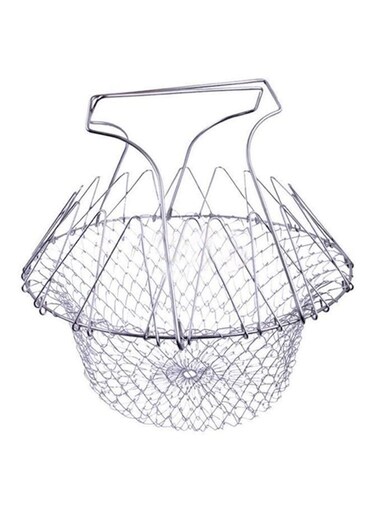 سلة قلي قابلة للطي من المعدن للطهاة فضي