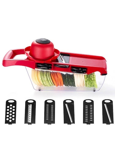 مبشرة خضراوات وقطّاعة متعددة الوظائف مع قطّاعة للجزر ومبشرة وقطّاعة للبطاطس أحمر/أسود 32x11x11سنتيمتر