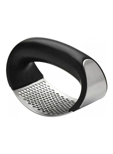 مطحنة ثوم هزازة للمطبخ من من الستانلس ستيل مع مقبض بلاستيكي سهل الغسل باللون فضي