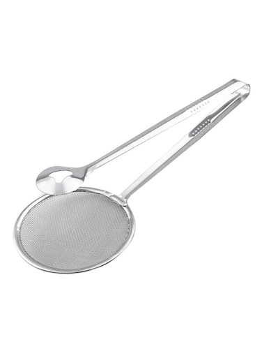 مصفاة بشبكة لتصفية زيت الطعام المقلي على شكل ملعقة مزودة بملقط فضي 28.00 x 10.00 x 1.00سنتيمتر