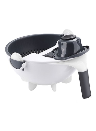 طقم كامل يحتوي على أداوات مختلفة للتقطيع على شكل شرائح، منتج يمكن استخدامه أيضاً لغسل الأطعمة وتجفيفها
