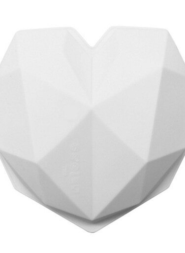 قالب كيك مربع ثلاثي الأبعاد من السيليكون على شكل سحابة/ألماسة بتصميم قلوب أبيض 22سم