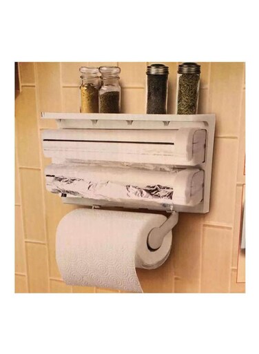 موزع ثلاثي للورق مع قطاعة لتغليف رقائق الألومنيوم والمطبخ ابيض