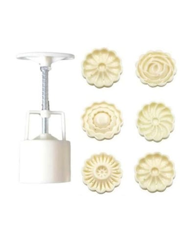 أداة تقطيع البسكويت بالضغط اليدوي على شكل زهرة أبيض/ فضي/ بيج
