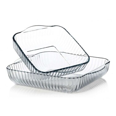 بوركام طقم صواني فرن زجاجية مخددة مربعة