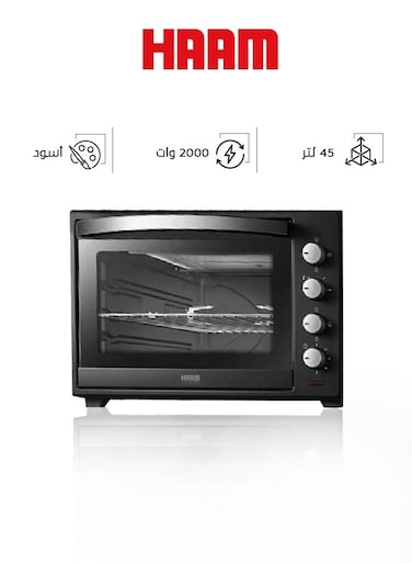 فرن مع شواية، 45 لتر، أسود، 2000 واط، مانع الالتصاق، HMTO45L-19