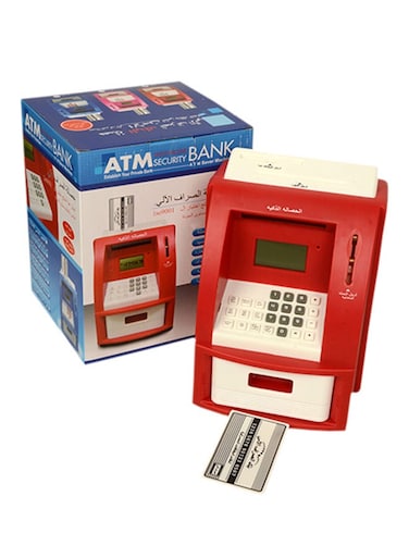 يمكن للأطفال استخدام لعبة ماكينة الصراف الآلي هذه لتوفير المال فعلياً مثل المصرف أو حصالة نقود