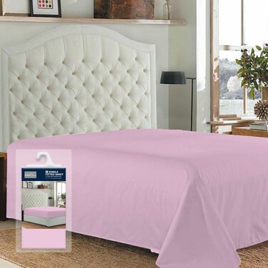 شرشف بمطاط فردي لون وردي 99 × 199 + 25 سم