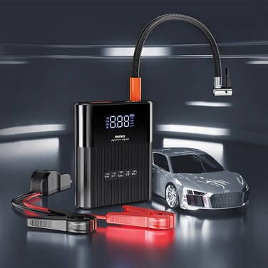 محمول متعدد الوظائف بادئ تشغيل السيارة ومضخة هواء 8800 مللي أمبير / ساعة أسود باور بنك ريماكس