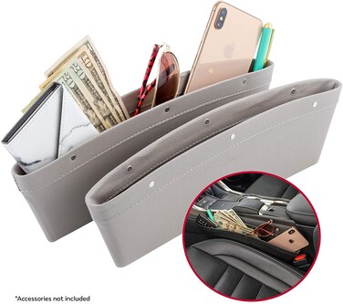 منظم مقعد السيارة كاتش كادي صندوق تخزين لمقعد السيارة من قطعتين يساعد على تقليل تشتت القيادة وحمل الهاتف - رمادي