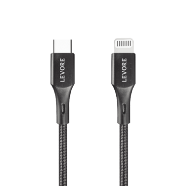 سلك شاحن ليفوري من USB-C إلى آيفون معتمد من أبل MFI نايلون بطول 1 م - اسود