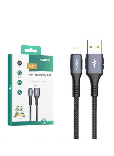 كابل شحن روك فاست 2.4A للايفون من موكسوم اسود 1متر - CC-81