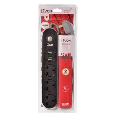 تسون وصلة كهربائية 3 منافذ كهرب 2 منفذ يو اس بي 5 متر