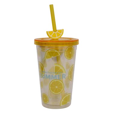 واي دبليو كوب بلاستيك سعة 340 مل مع قش