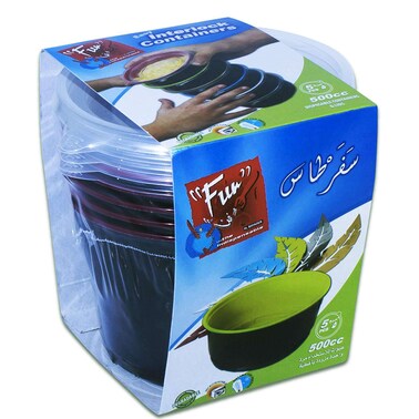 فن إنترلوك حاوية بقاعدة حلزونية 500 سي سي أسود وشفاف 5 قطع