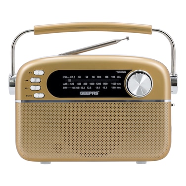 Geepas راديو قابل للشحن مع بلوتوث، 3 موجات راديو، GR13015، مدخل ايه يو اكس، بطارية قابلة للشحن، عملية AC/DC، بطاقة بلوتوث/ اف ام/ ام بي 3/ يو اس بي بي/ تي اف