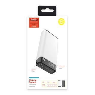جوي روم شاحن متنقل 3 منافذ إدخال مع شاشة طاقة رقمية ، 30000 مللي أمبير ، D-M208 ، أسود/أبيض