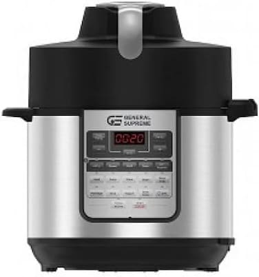 قدر ضغط ومقلاة هوائية 2 في 1 بقدرة 1500 واط من جينيرال سوبريم - سعة 5.7 لتر، فولاذ مقاوم للصدأ، فضي