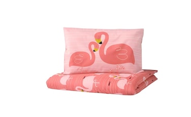 جينيريك غطاء لحاف 1 كيس وسادة لسرير أطفال, فلامنغو/زهري 110x125/35x55 سم