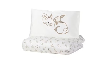 جينيريك غطاء لحاف 1 كيس وسادة طفل, نقش أرنب/أبيض/بيج 110x125/35x55 سم