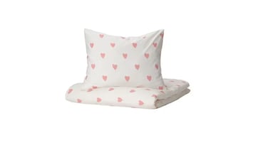جينيريك غطاء لحاف وكيس وسادة, نقش قلب أبيض/وردي 150x200/50x80 سم