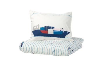 - جينيريك غطاء لحاف وكيس وسادة, نقش أمواج/قوارب/أزرق 150x200/50x80 سم