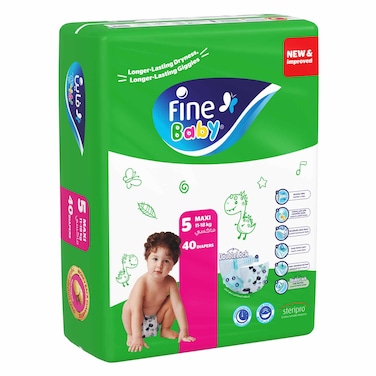 فاين بيبي حفاضات مقاس 5 ماكسي 11-18 كجم 40 حفاض
