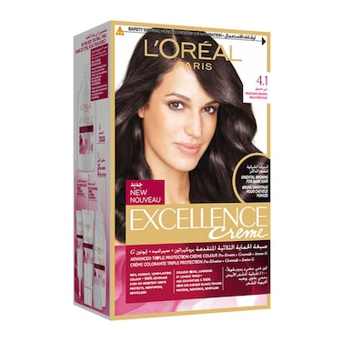 لوريال باريس إكسلنس كريم صبغة دائمة 4.1 بني عميق - تغطية كاملة للشيب وحماية ثلاثية