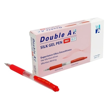 دبل ايه قلم جل حريري 0.7، لون أحمر، عبوة من 12 قطعة